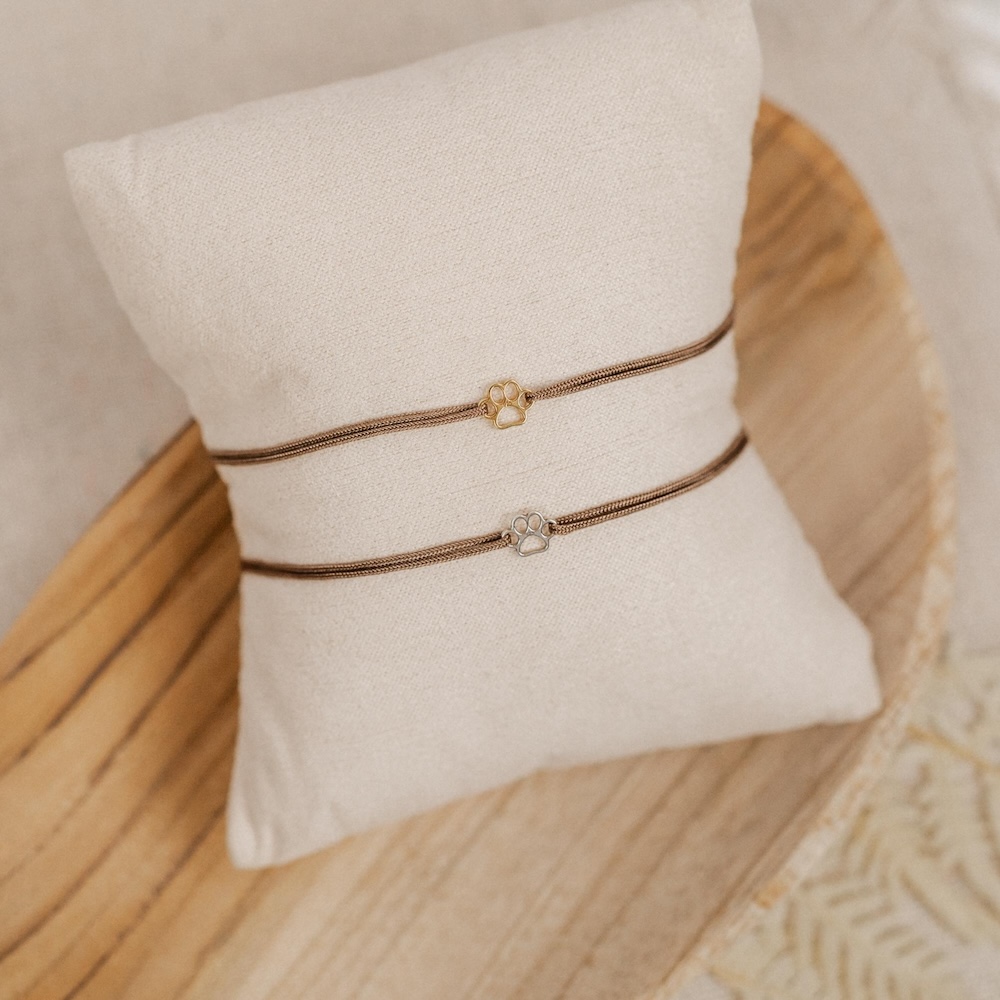 Das Armband Mini-Pfote ist ein schlichtes, handgefertigtes Schmuckstück mit einem kleinen, feinen Pfötchen-Anhänger aus 925 Sterling Silber. Du kannst zwischen der silberfarbenen oder vergoldeten Variante wählen – passend zu deinem Stil.
