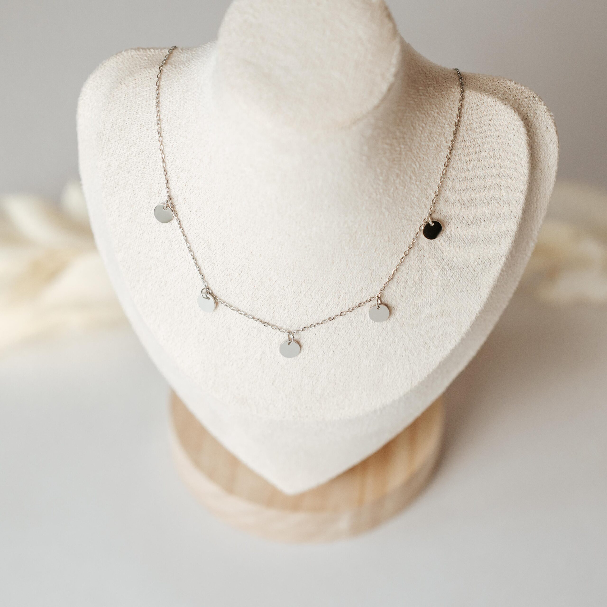 Halskette Coins aus Edelstahl – ein elegantes Schmuckstück, das durch ihre feinen Plättchen modern und verspielt zugleich wirkt. Mit einer Länge von 45 cm + 5 cm Verlängerung lässt sich die Kette individuell anpassen und passt sowohl zum Alltag als auch zu besonderen Anlässen.