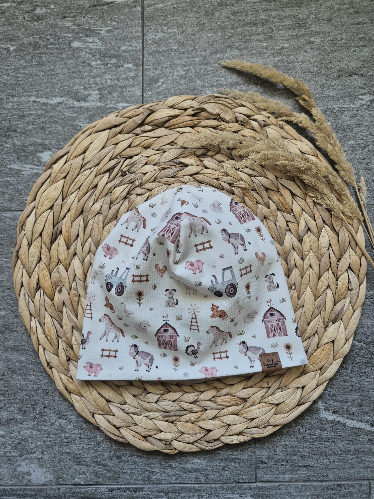 Jerseyhaube für Kinder – 3 Motive – Dino, Bauernhof und Blümchen