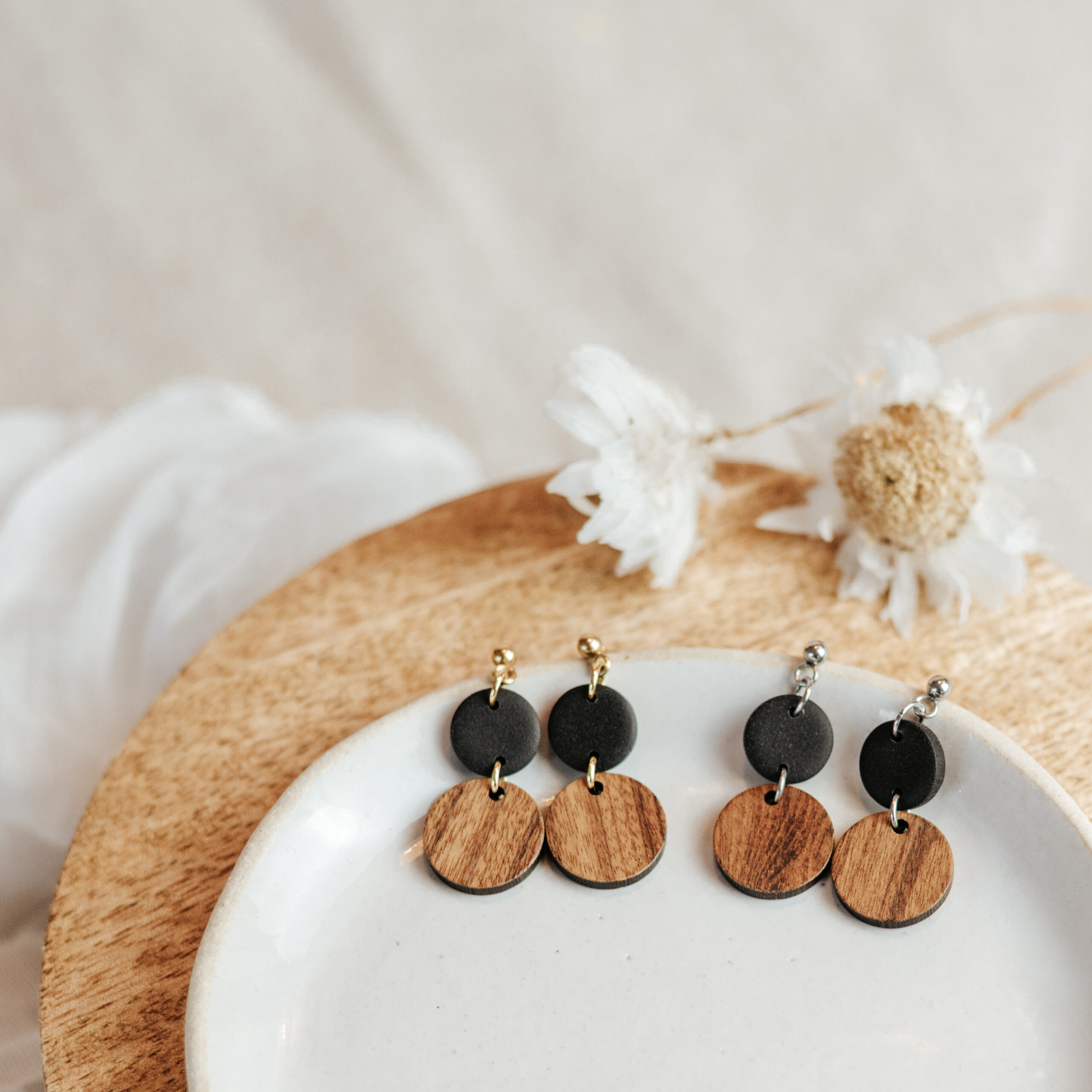 Ohrhänger Holz No. 3 – Holz & PolymerClay