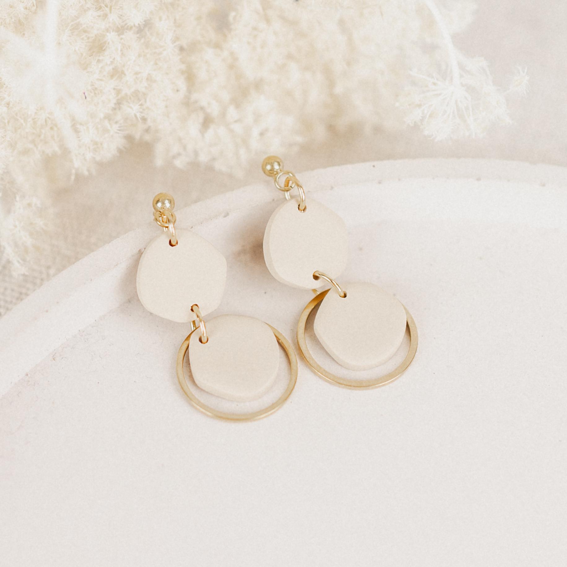 Ohrhänger Irregular Circles – Beige oder Schwarz