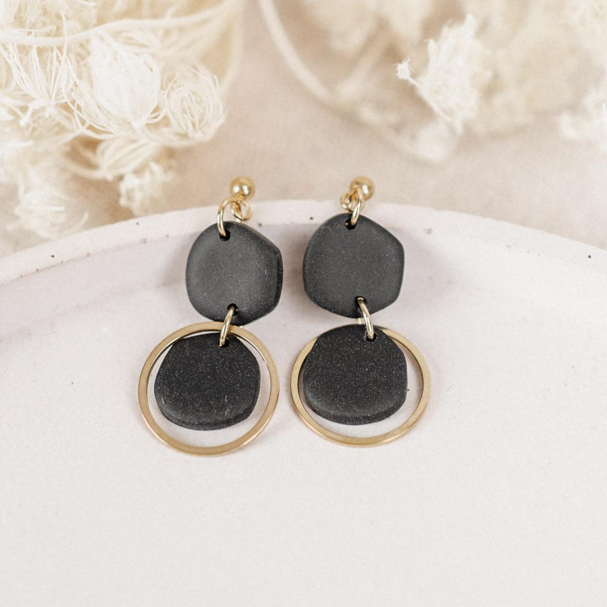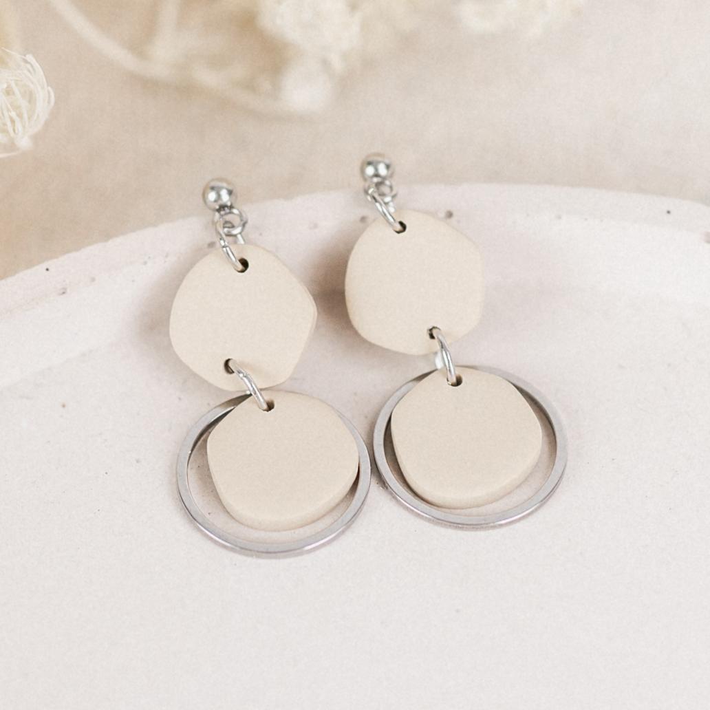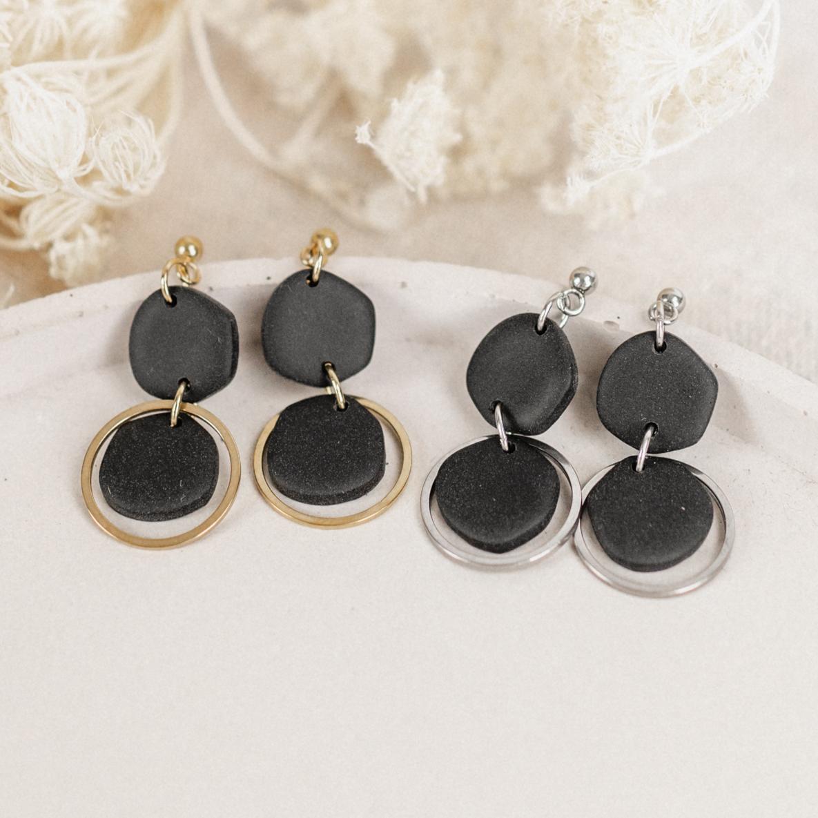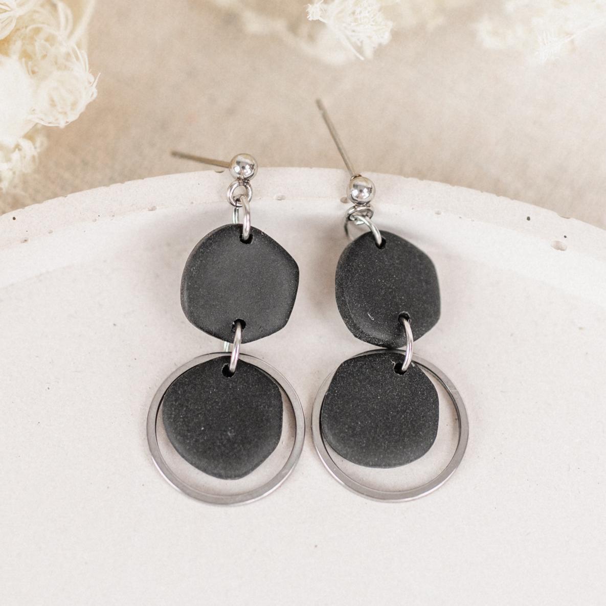 Ohrhänger Irregular Circles – Beige oder Schwarz – Edelstahl & PolymerClay