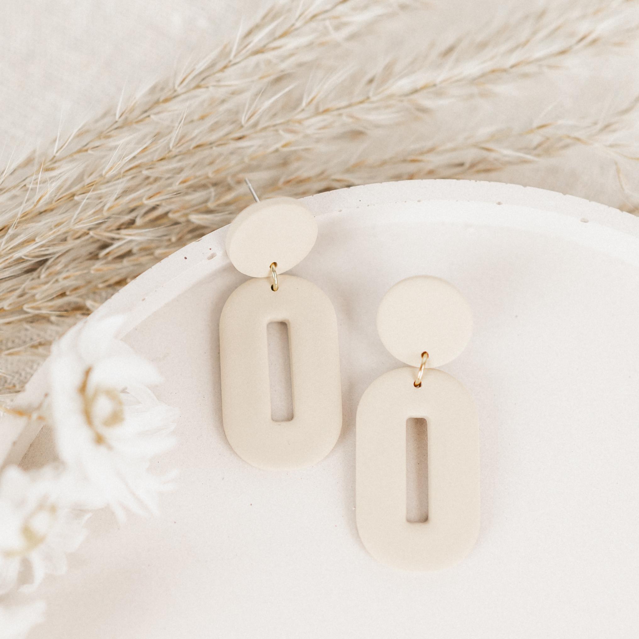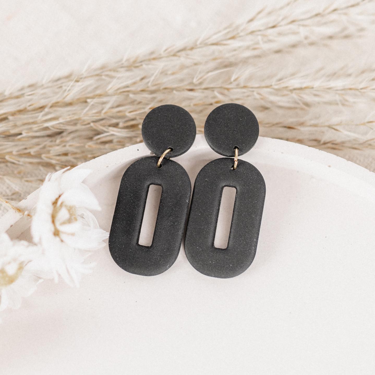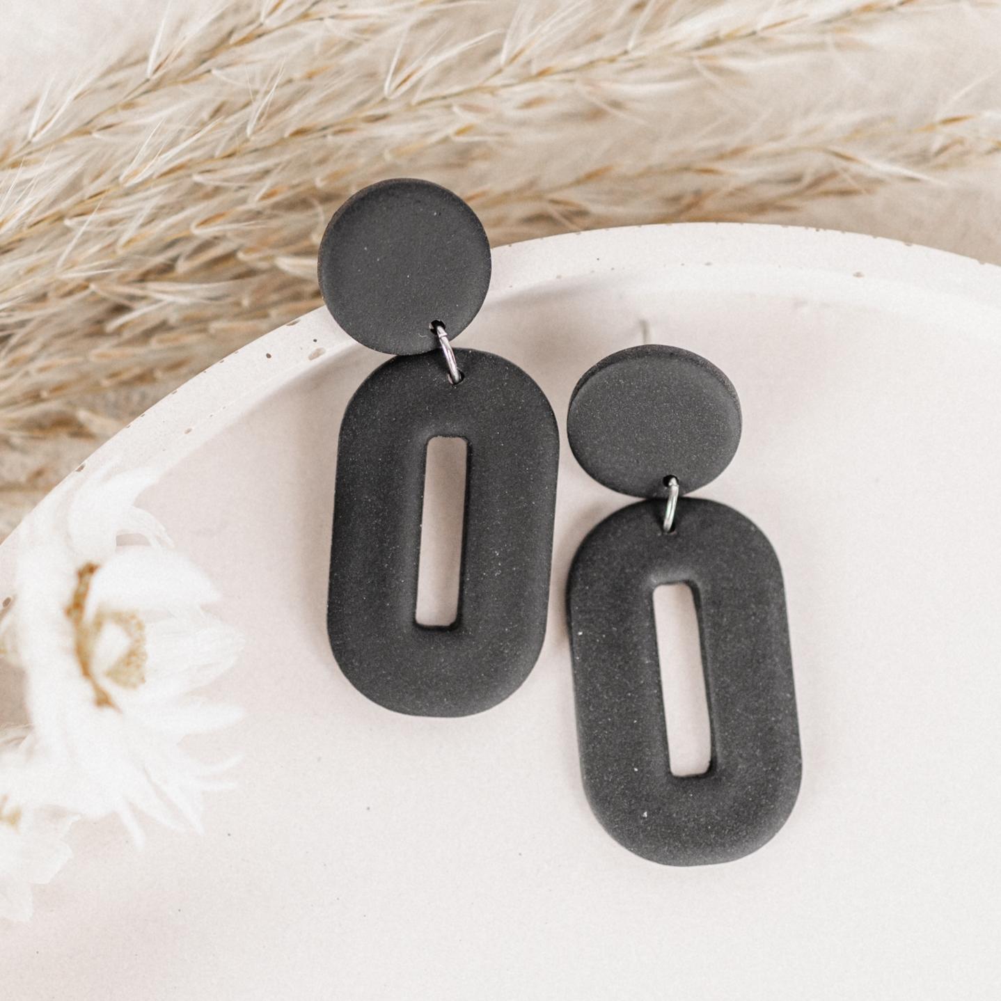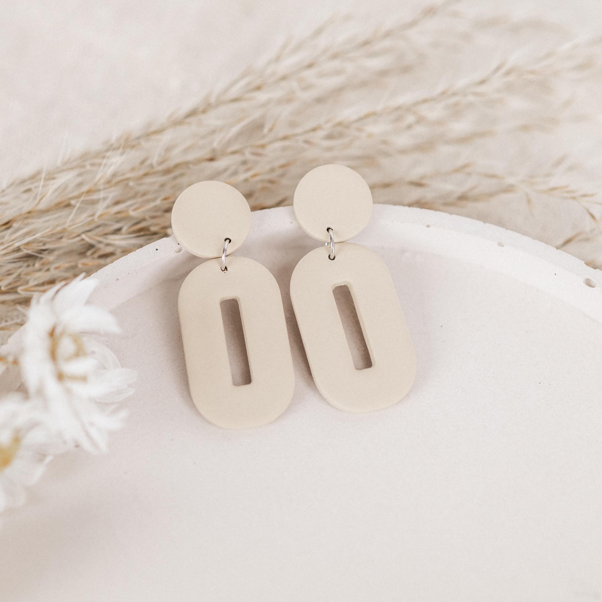 Ohrhänger Statement – Schwarz oder Beige – Edelstahl & Polymer Clay