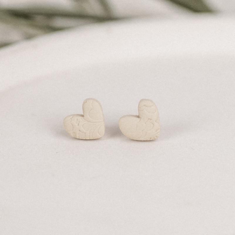 Besonders schön: Du kannst aus verschiedenen Strukturen (Prägungen) wählen, die jedem Paar einen einzigartigen Charakter verleihen. Zudem stehen drei Formen – Herz, Rund und Dreieck – zur Auswahl. Farblich sind die Ohrstecker in Beige, Weiß, Salbei, Schwarz sowie in einem besonderen Beige mit Leoparden-Muster erhältlich (bei Leo ausschließlich ohne Struktur/Prägung).
