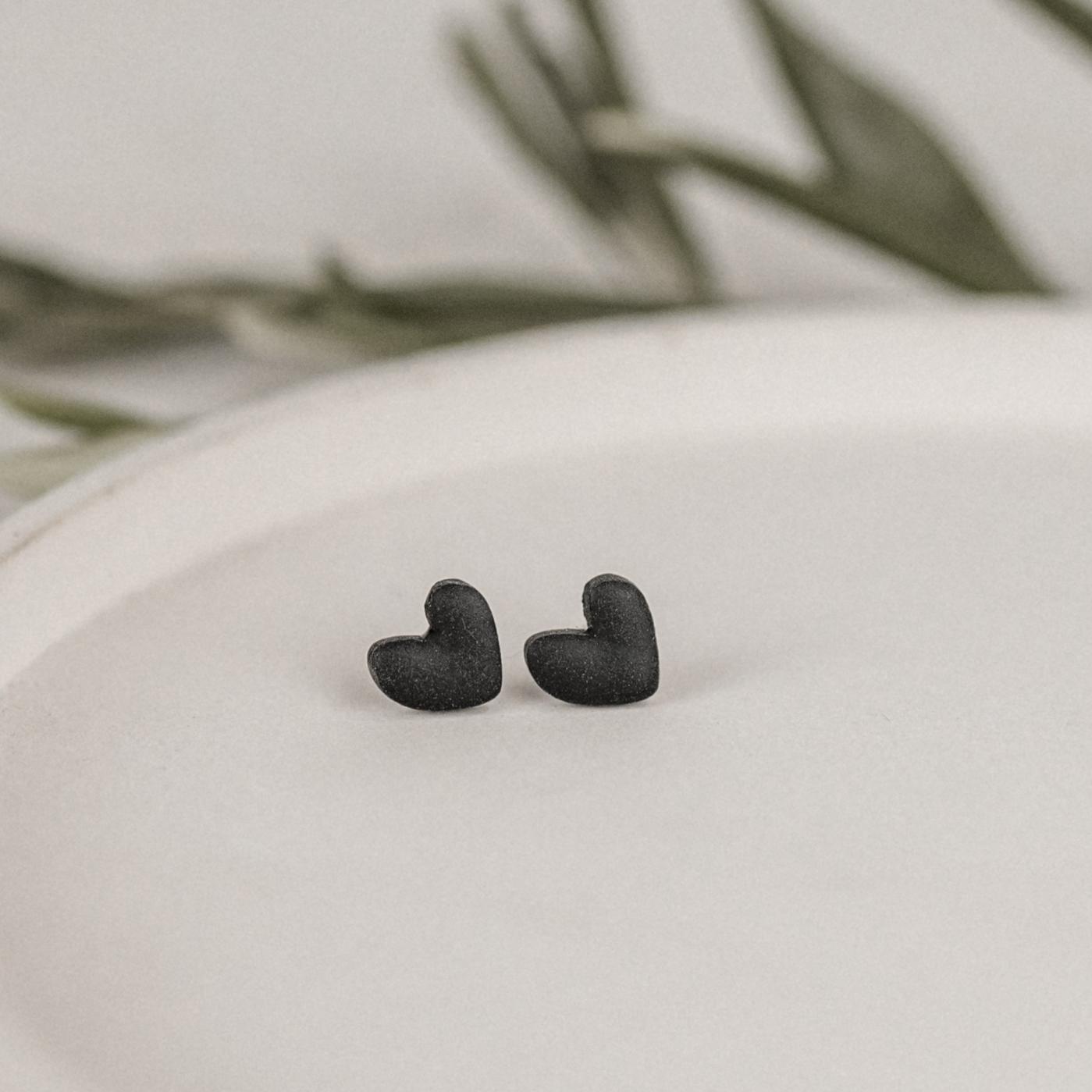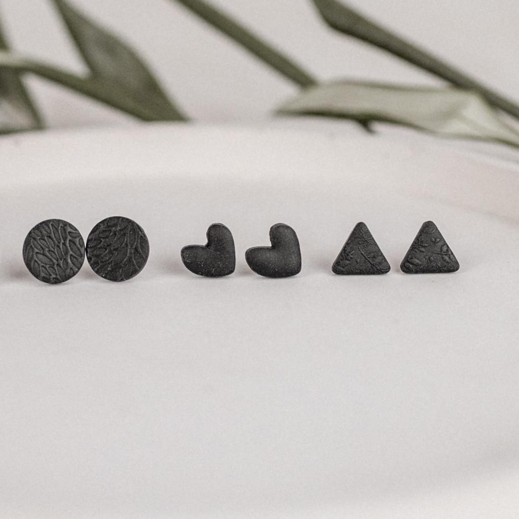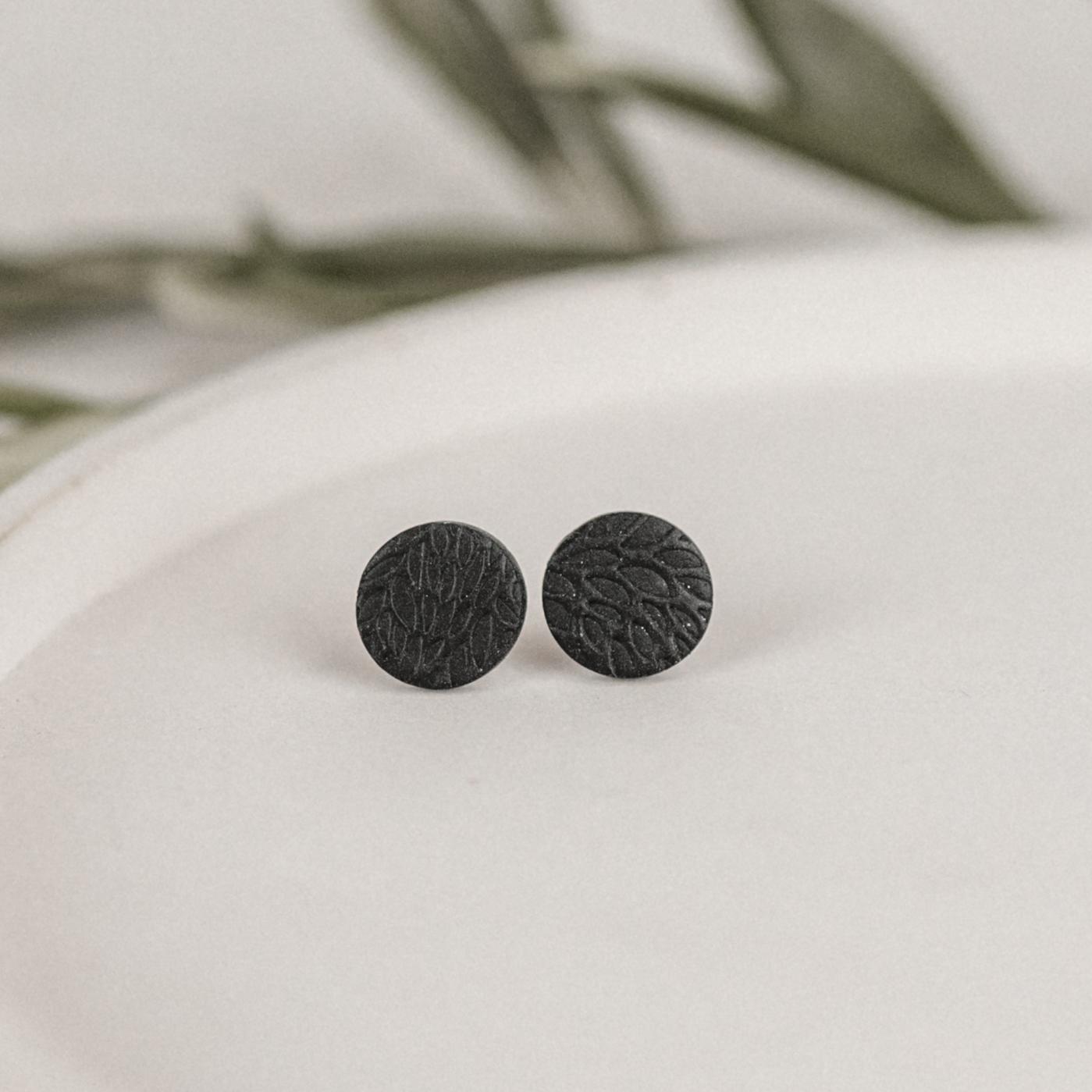 Diese handgefertigten Ohrstecker in elegantem Schwarz vereinen zeitloses Design mit moderner Leichtigkeit. Jeder Stecker wird sorgfältig aus hochwertigem Polymer Clay gefertigt und die Rückseite mit UV-Harz versiegelt.